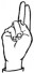 На ћирилици написано НЕМАЊА ГОДОЧЕВИЋ састоји се из 15 слова [?]. Исписано ћириличном једноручном азбуком за глувонеме: